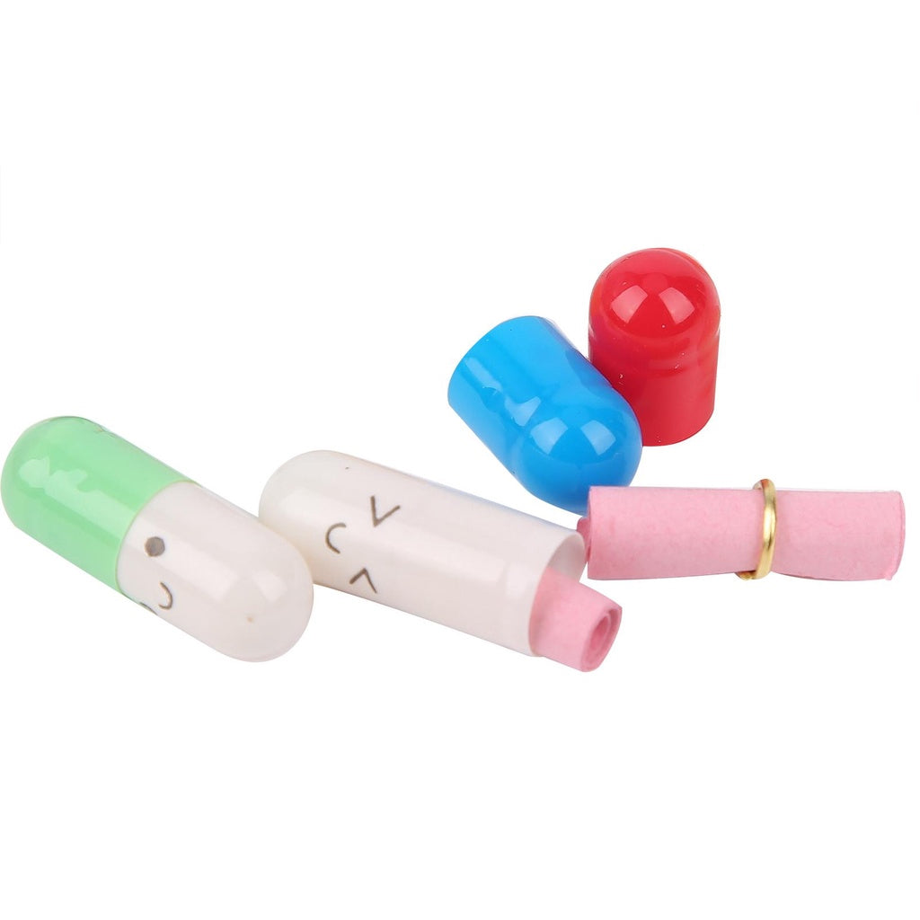 - Measurement: Each pill/capsule measures 0.75” long X 0.25” wide. Each piece of paper contained in the pill measures: 2.25” long X 0.75” height.