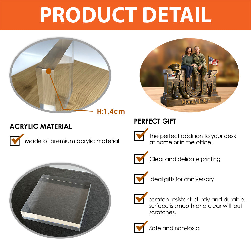 Proud Veteran Mom - Personalized Veteran Custom Shaped Acrylic Plaque
