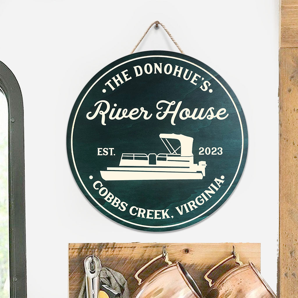 River House - Personalized Pontoon Round Wood Sign