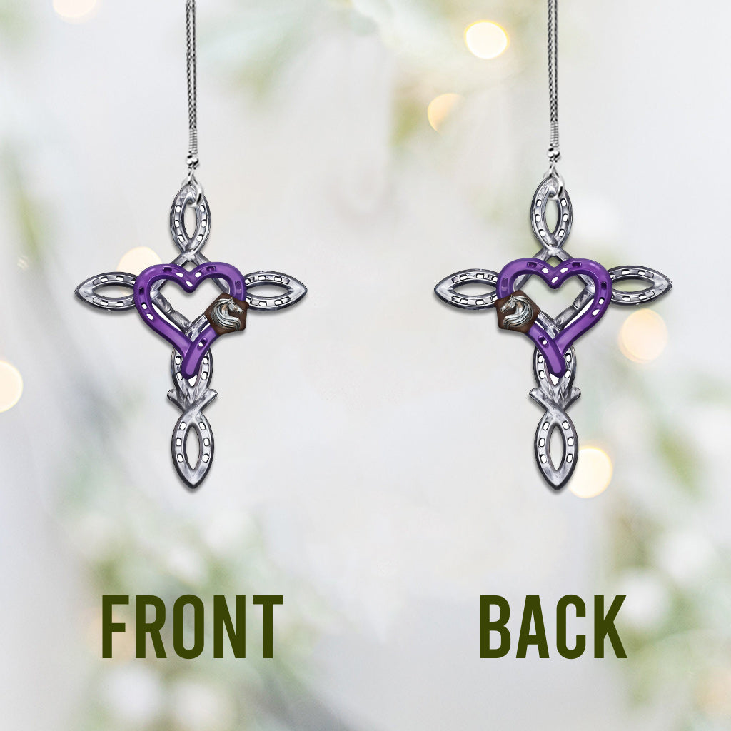 Rustic Horseshoe Cross - Personalized Horse Car Ornament