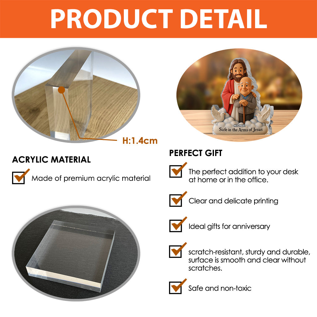 Safe In The Arms Of Jesus - Personalized Memorial Custom Shaped Acrylic Plaque