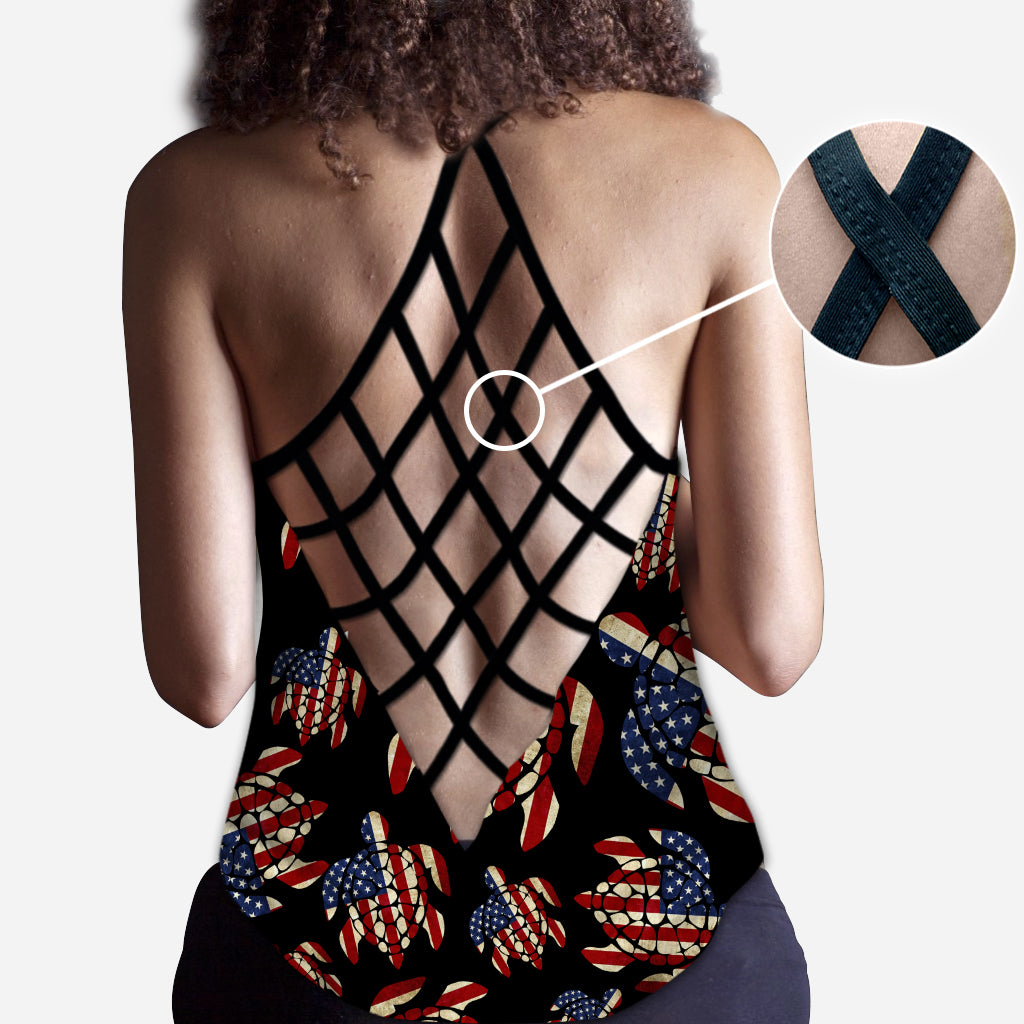 Salty Lil Beach 4th Of July Flag - Personalized Turtle Cross Tank Top