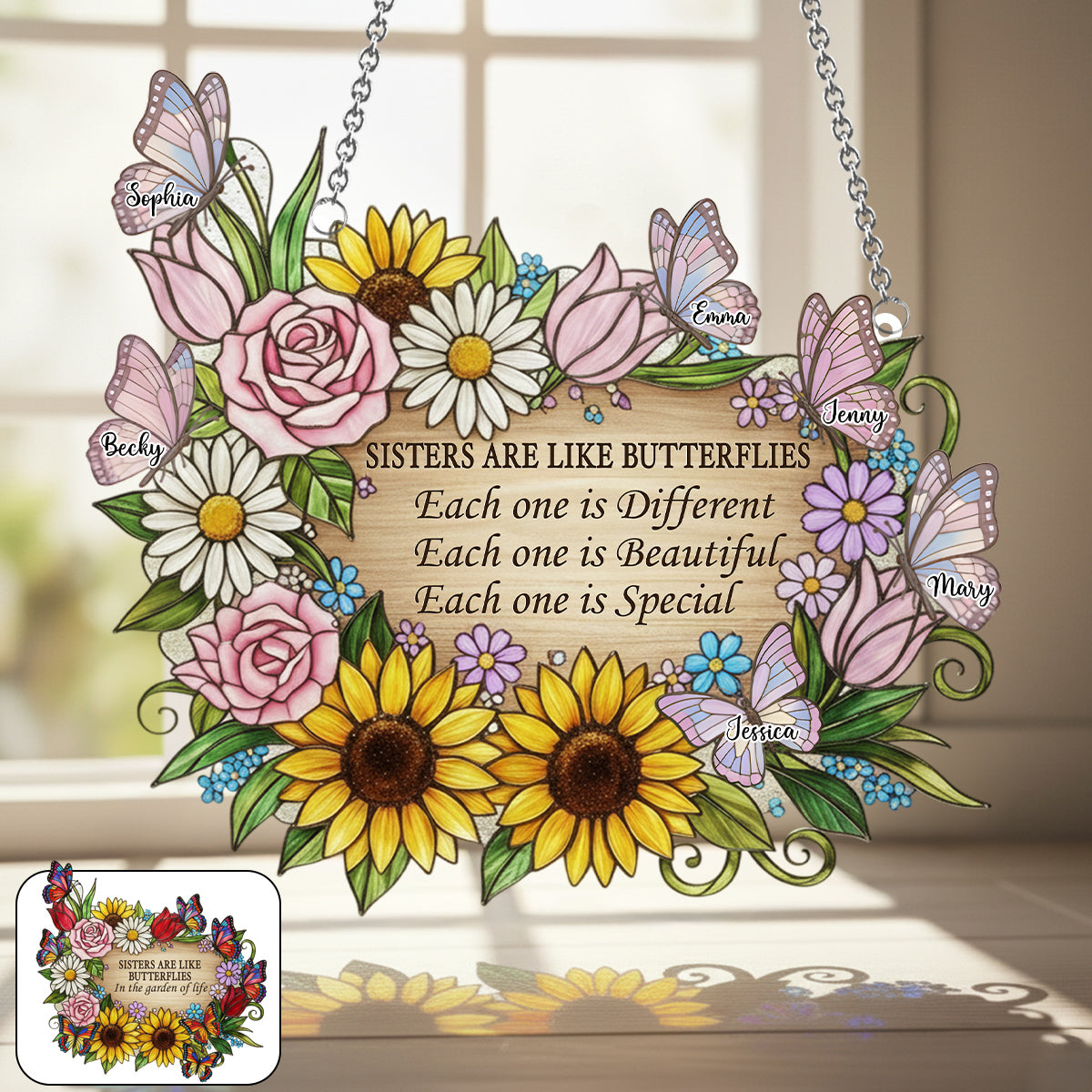 Sisters Are Like Butterflies - Personalized Sister Window Hanging Suncatcher Ornament