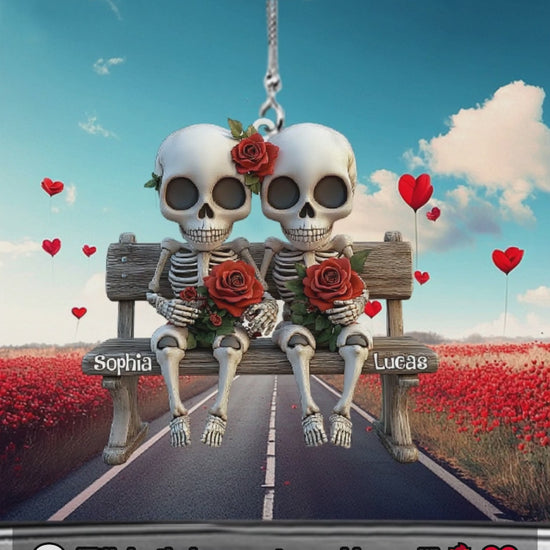 Skull Couple With Red Roses - Personalized Couple Car Ornament
