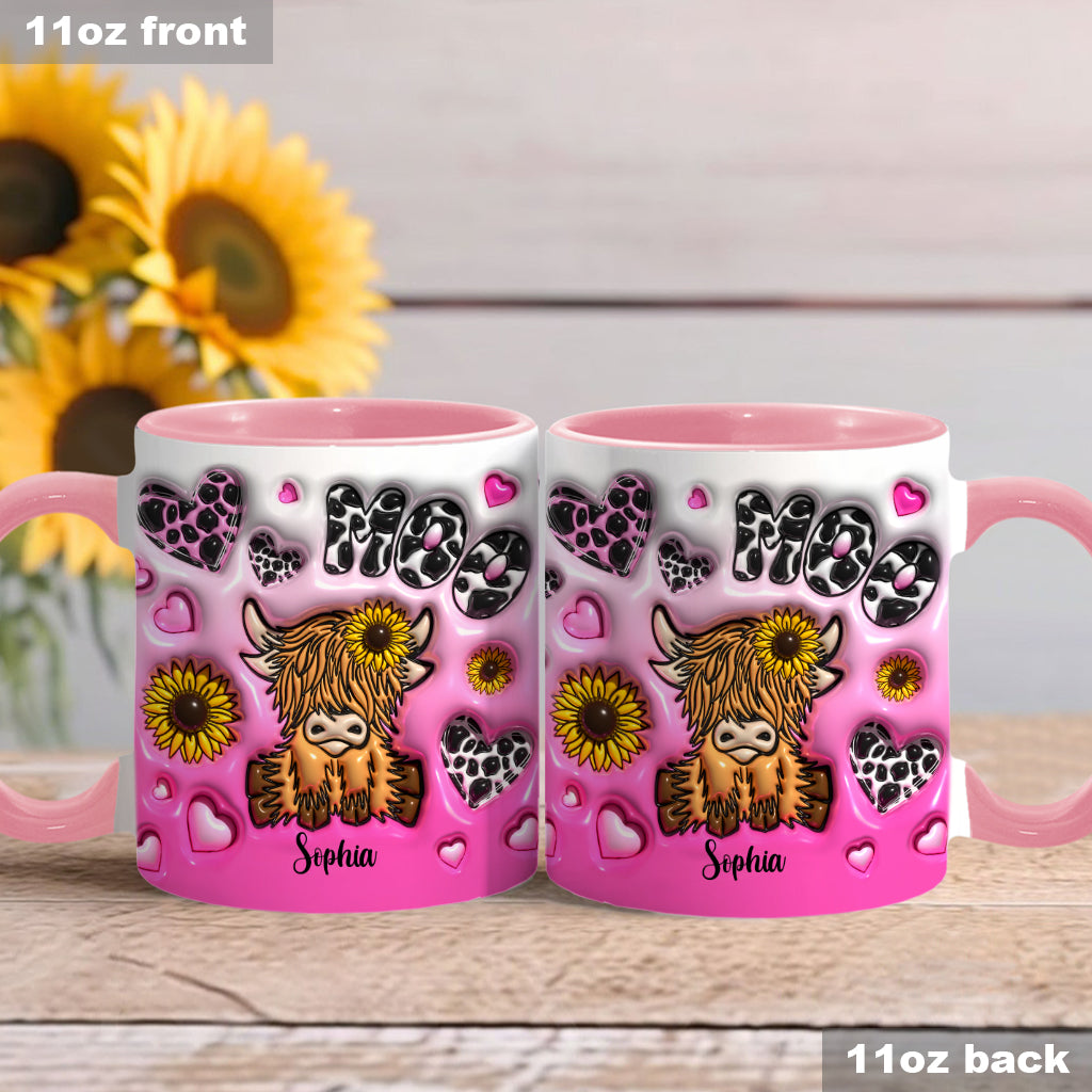 Sunflower Highland Cow - Personalized Accent Mug
