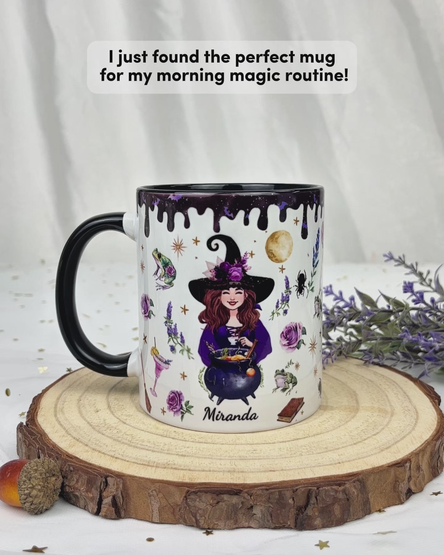R.W. Beautiful cup. I thought this was a textured cup, that you could feel the details but it is not. I love the colors and design, personalizing this cup makes it extra special and the ordering process was nice and easy which also allows you to preview your order/design before you press checkout. Delivery was very fast and I received so many compliments on this beautiful witch cup.