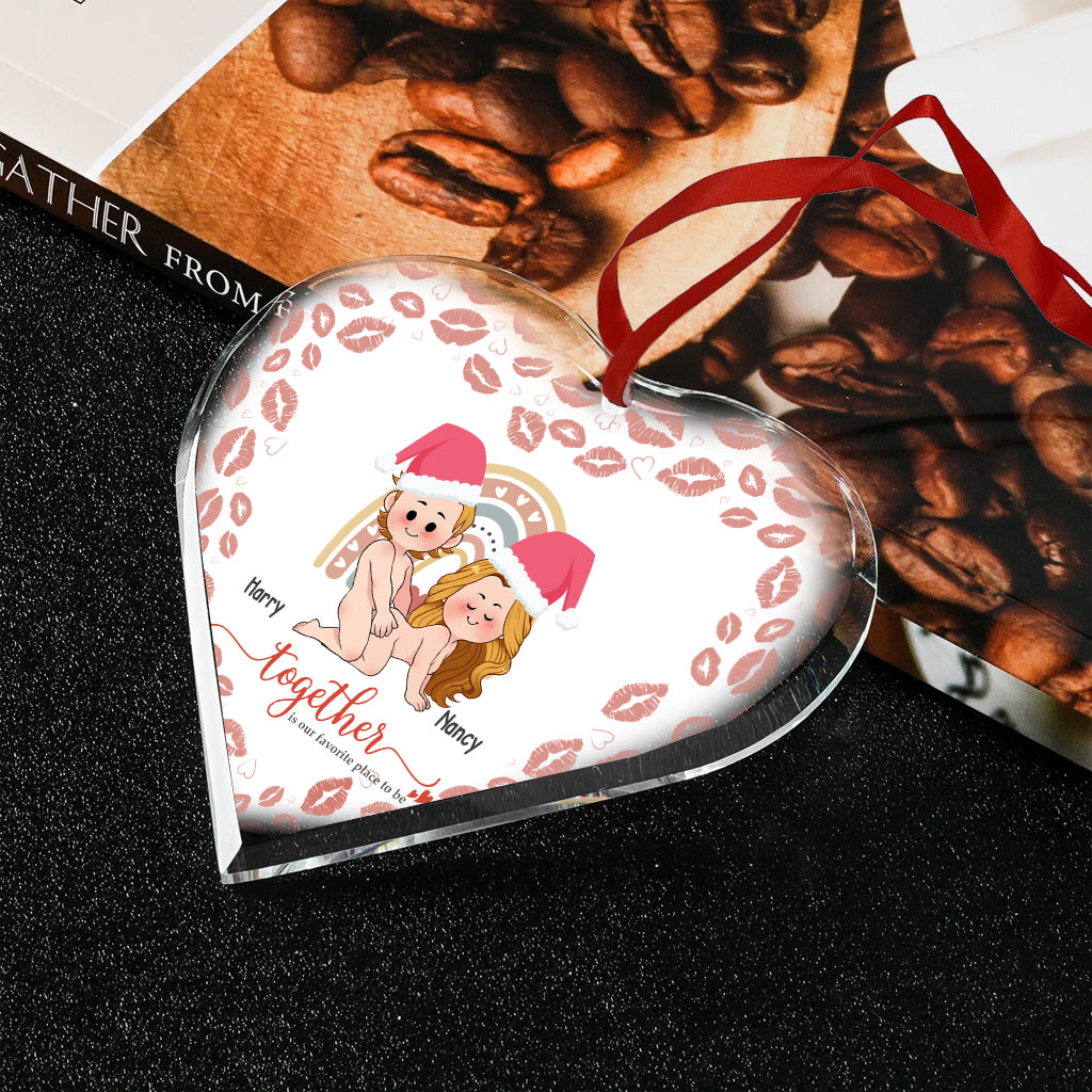 Together Is Our Favorite Place - Personalized Couple Heart Shaped Glass Ornament