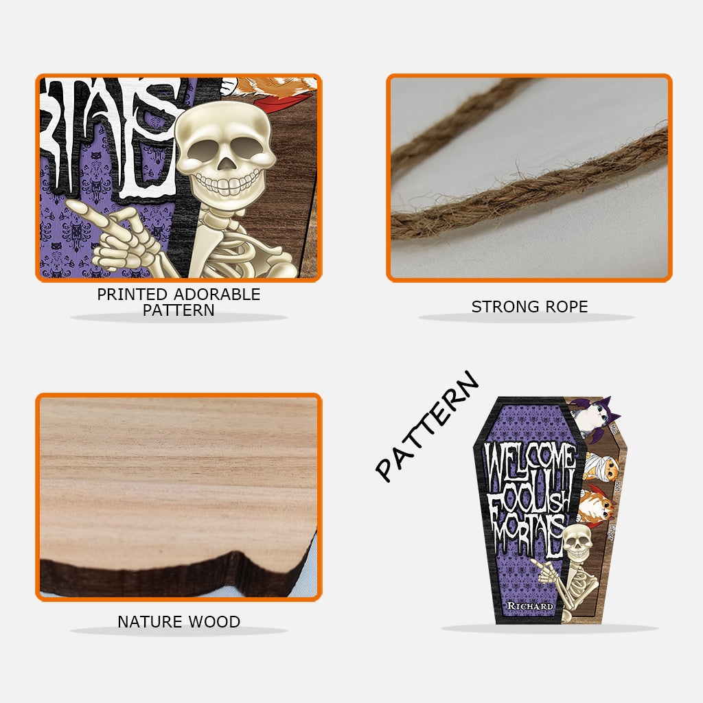 Welcome Foolish Mortals - Personalized Skull Custom Shaped Wood Sign