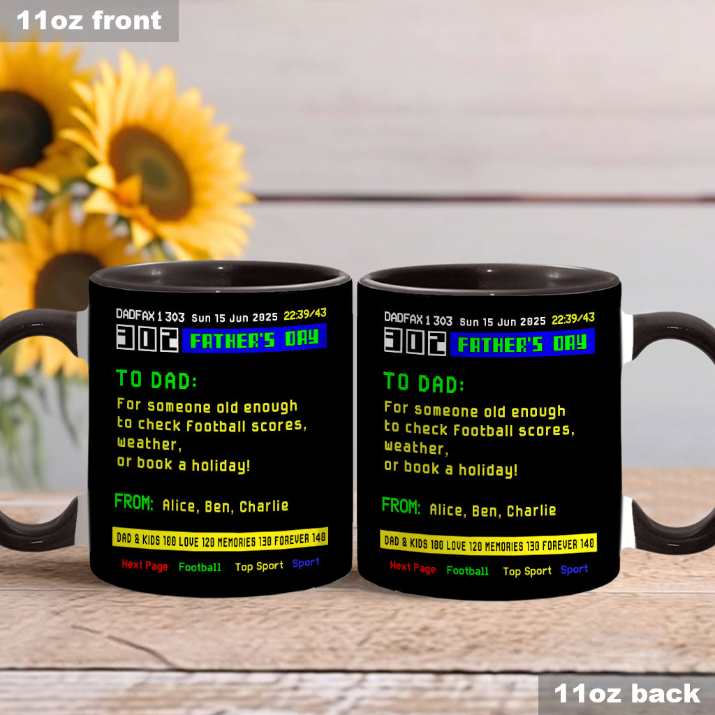 - High quality ceramic mug with two-tone rim, interior, & handle