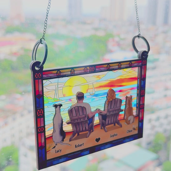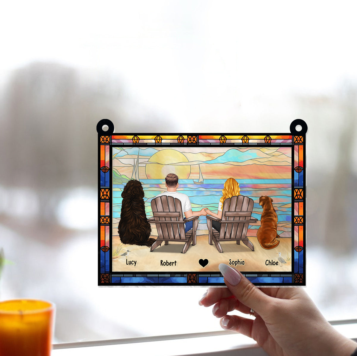You & Me and the Dogs - Personalized Couple Window Hanging Suncatcher Ornament