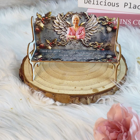 - This bench is a heartfelt and meaningful gift for a family who has lost a loved one. You can customize it with a photo of your loved one and a touching quote. It can be placed on a shelf, desk, fireplace, or any other spot in your home where you want to remember them.