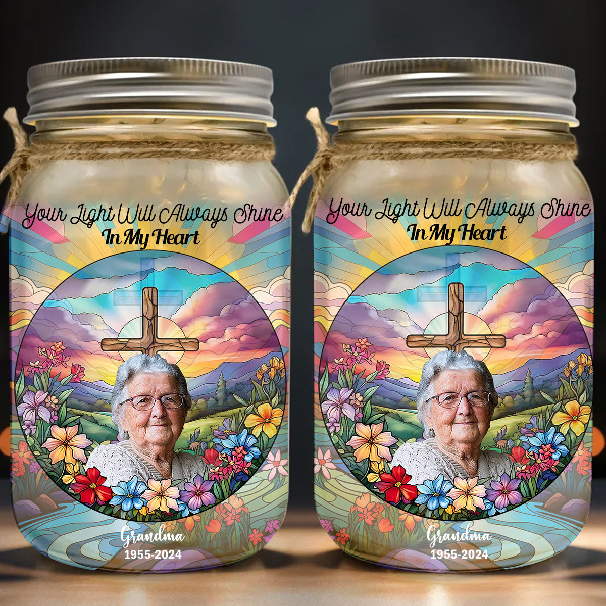 Your Light Will Always Shine In My Heart - Personalized Memorial Mason Jar Light