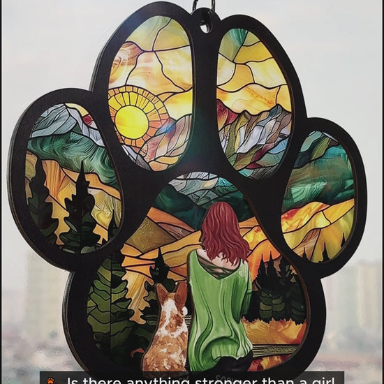 Une fille et son chien : un lien indéfectible - Attrape-soleil personnalisé à suspendre à une fenêtre (2 couches) - Motif chien
