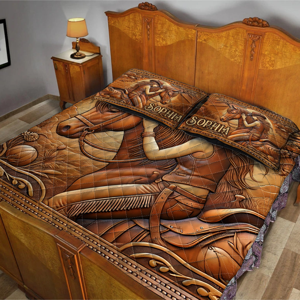 Une fille et son cheval - Ensemble de courtepointe personnalisé sur le thème des chevaux