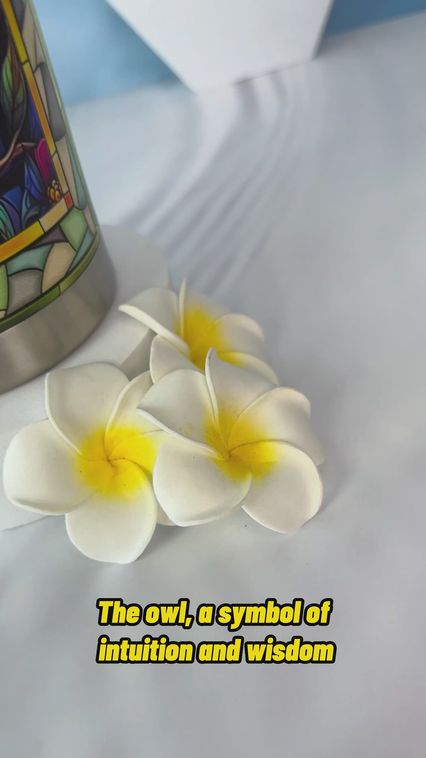 Gobelet personnalisé en verre vitrail avec motif hibou mignon