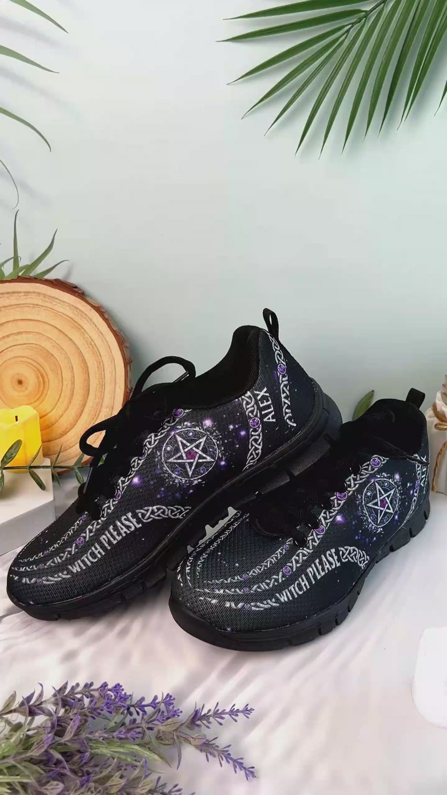 Baskets personnalisées Witch Please avec pentagramme violet - Baskets de sorcière