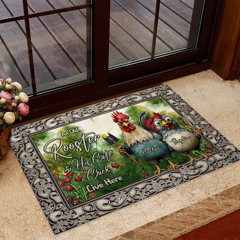 Paillasson personnalisé « Un vieux coq et son adorable poussin vivent ici »