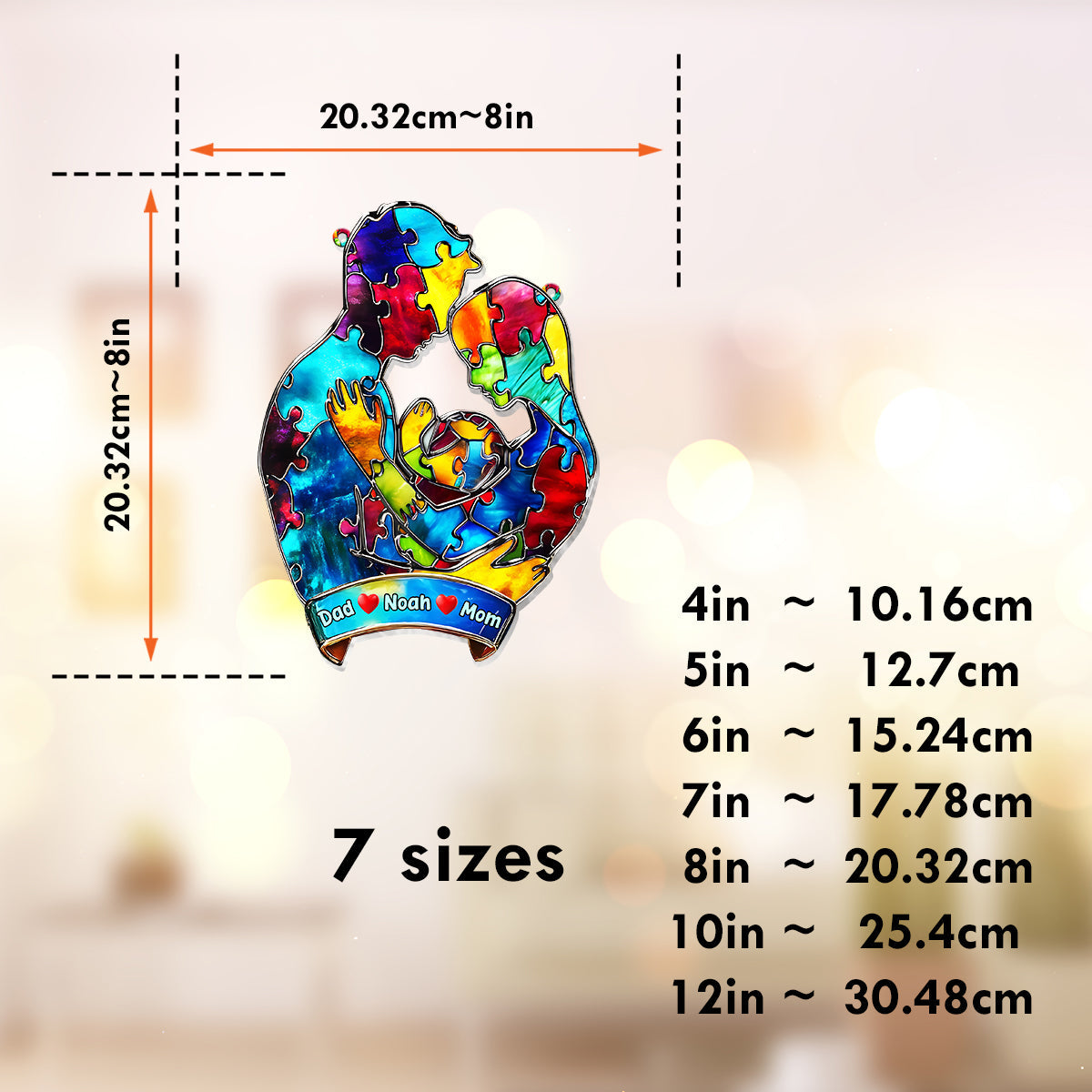 Câlin familial pour les personnes autistes - Attrape-soleil personnalisé à suspendre à la fenêtre pour sensibiliser à l'autisme