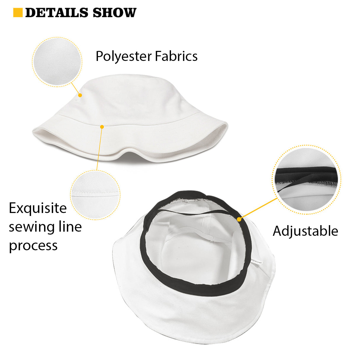 Confectionné en polyester léger et infroissable, ce chapeau est conçu pour un confort optimal et une grande durabilité. Son imprimé intégral permet d'afficher des motifs personnalisés éclatants, réalisés grâce à une impression par transfert thermique de haute qualité et résistante. Avec son style unisexe et ses tailles pour adultes et enfants, il est idéal pour la plage, la randonnée, les pique-niques, les festivals et toutes vos aventures du quotidien.