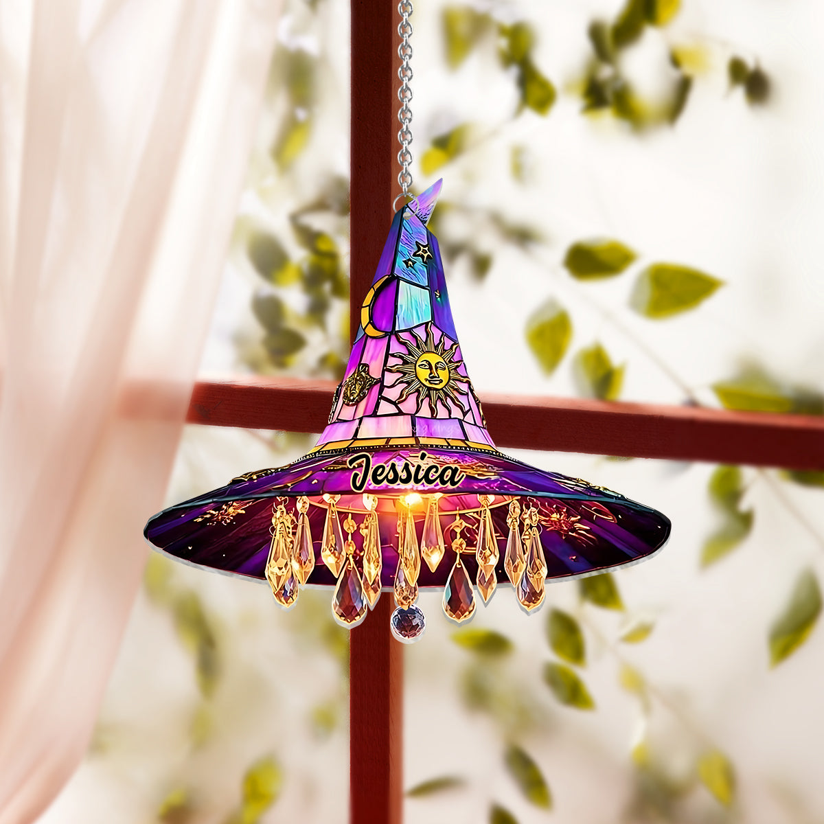 Chapeau de sorcière magnifique - Ornement attrape-soleil personnalisé à suspendre à la fenêtre