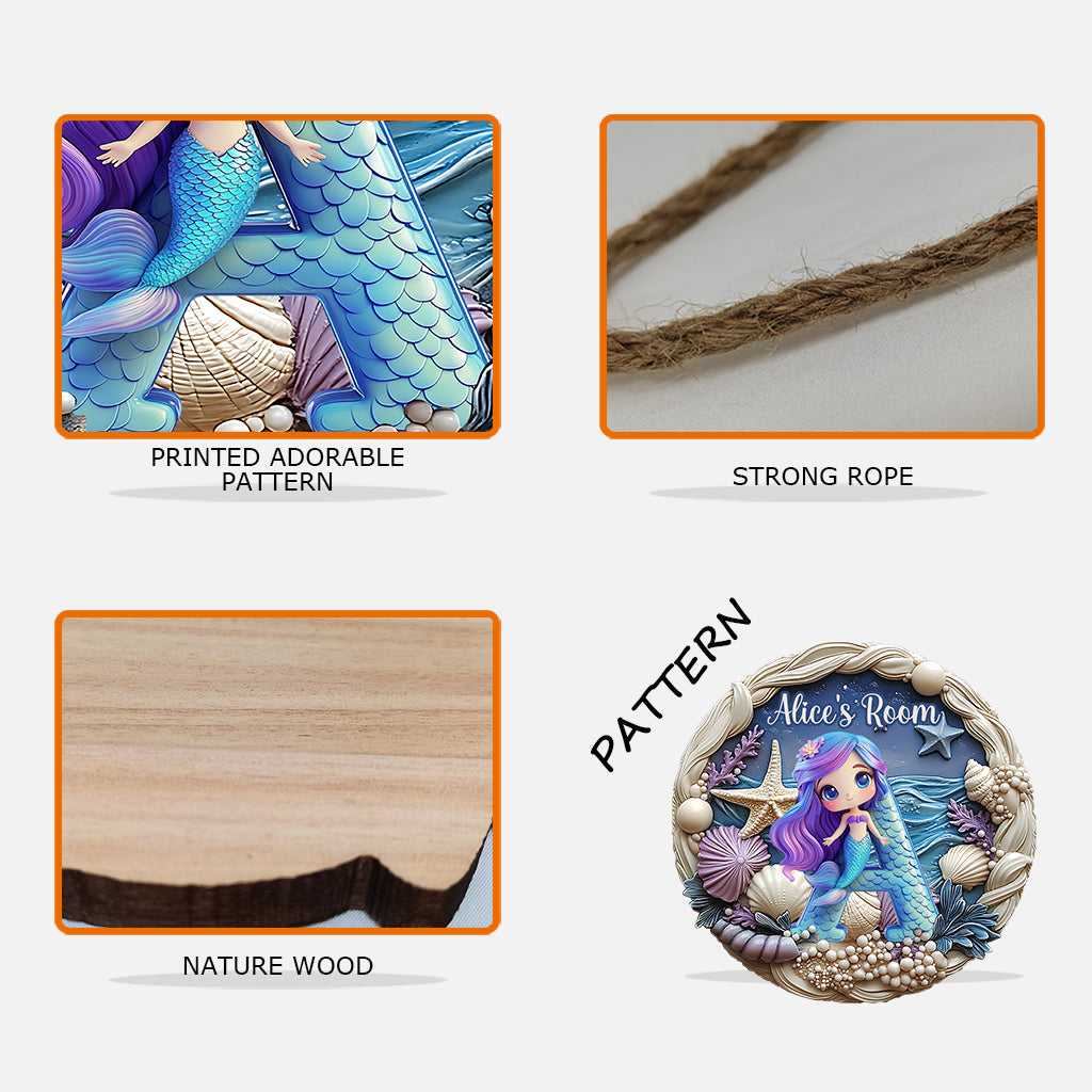 Belle sirène - Panneau en bois personnalisé pour enfant