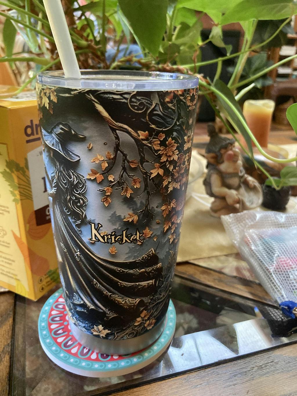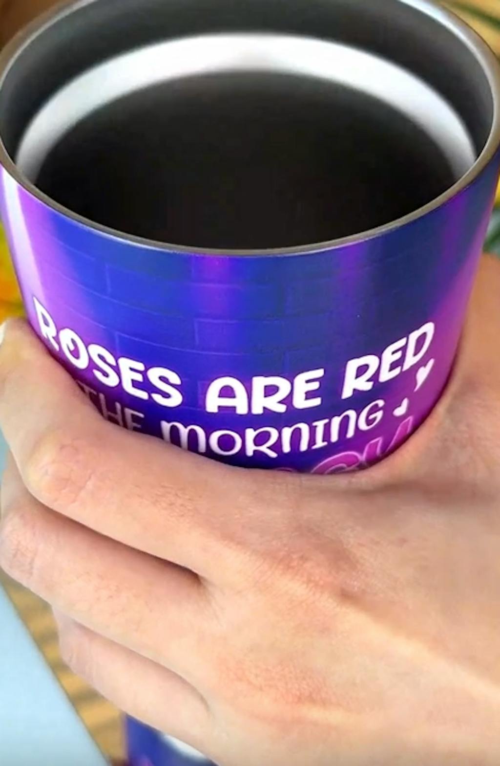 K.J. The cup came and it’s beautiful! I was very surprised at how well it keep my drinks cold. If I put ice water in it on my nightstand it will still have ice in the cup in the morning. I take it everywhere with me.