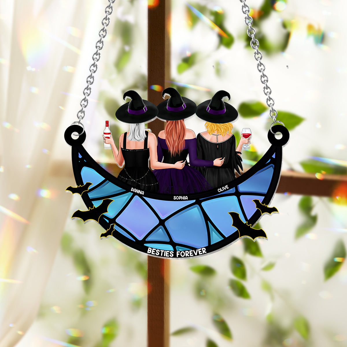 Meilleures amies pour toujours - Style sorcière - Attrape-soleil personnalisé à suspendre à la fenêtre