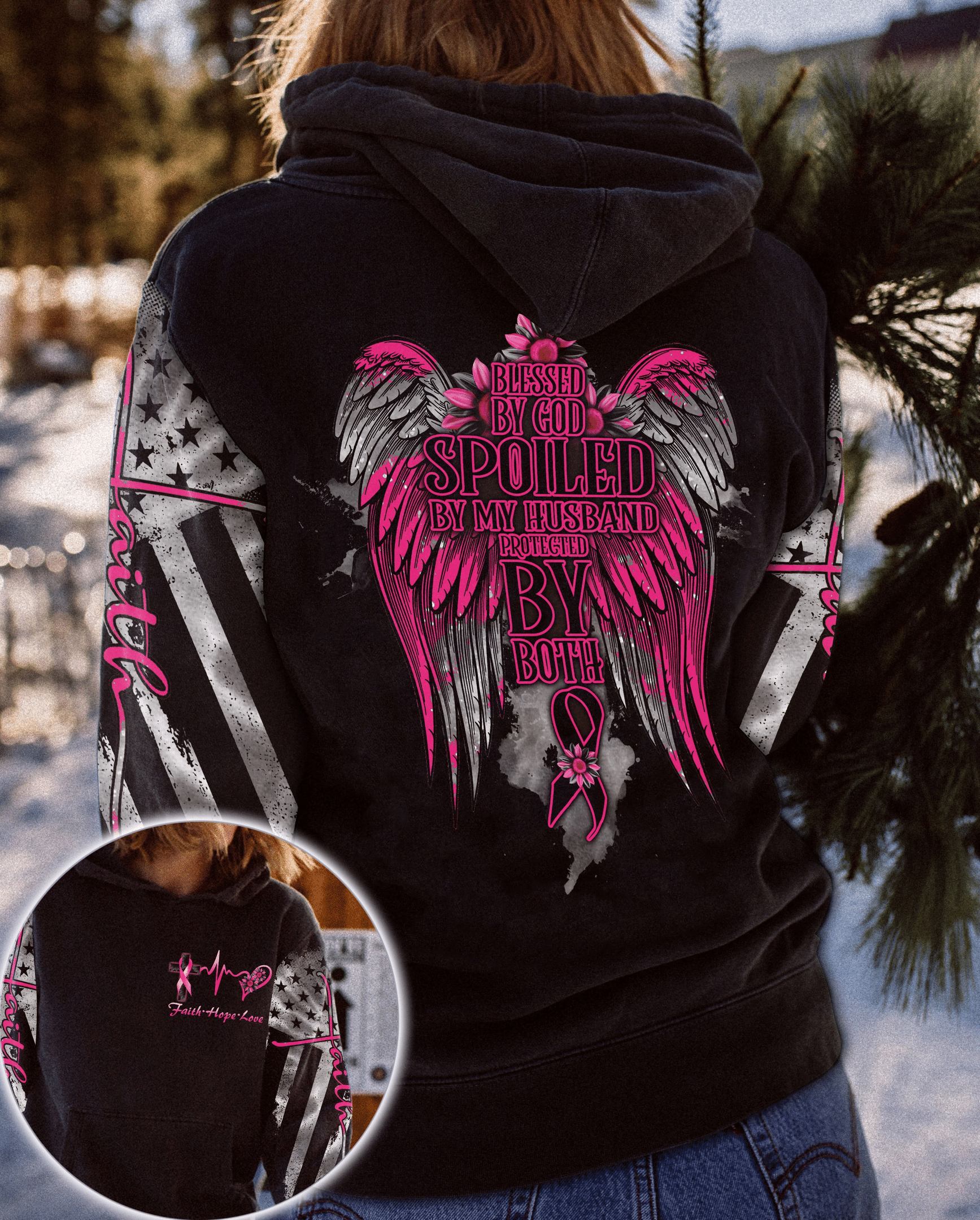 Béni par Dieu contre le cancer du sein - T-shirt et sweat à capuche de sensibilisation au cancer du sein 0822