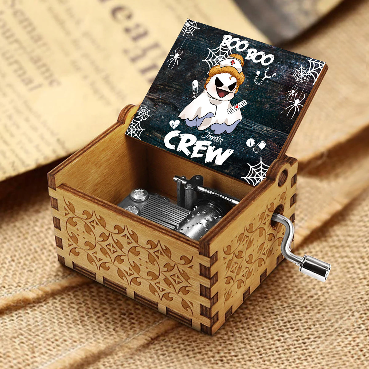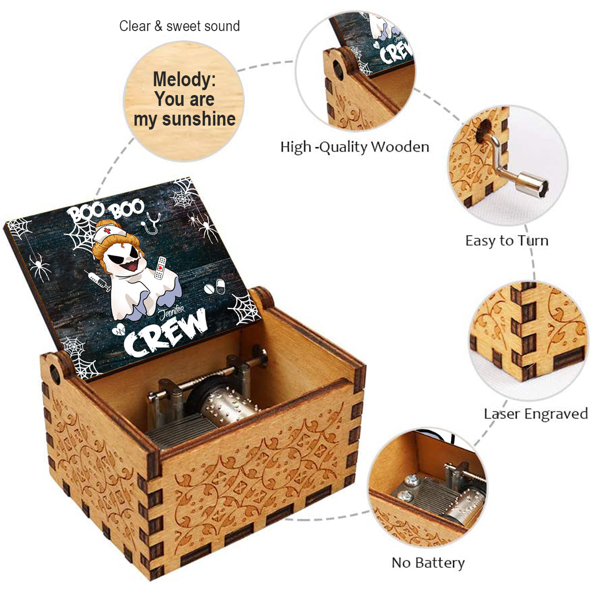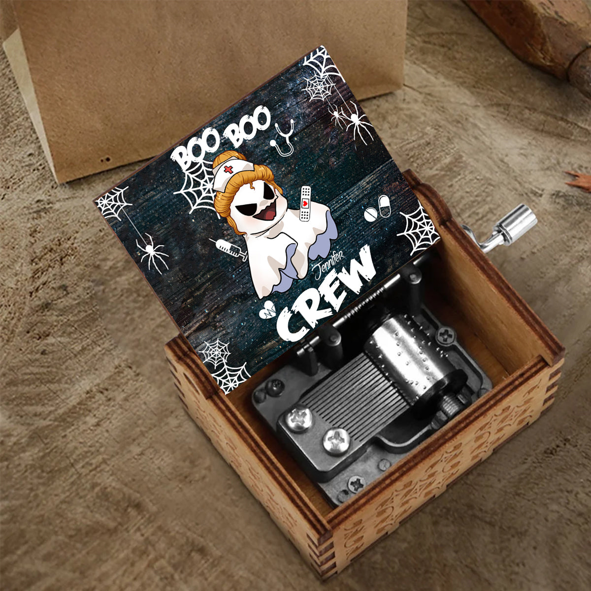 Boîte à musique à manivelle personnalisée Boo Boo Crew - Infirmière