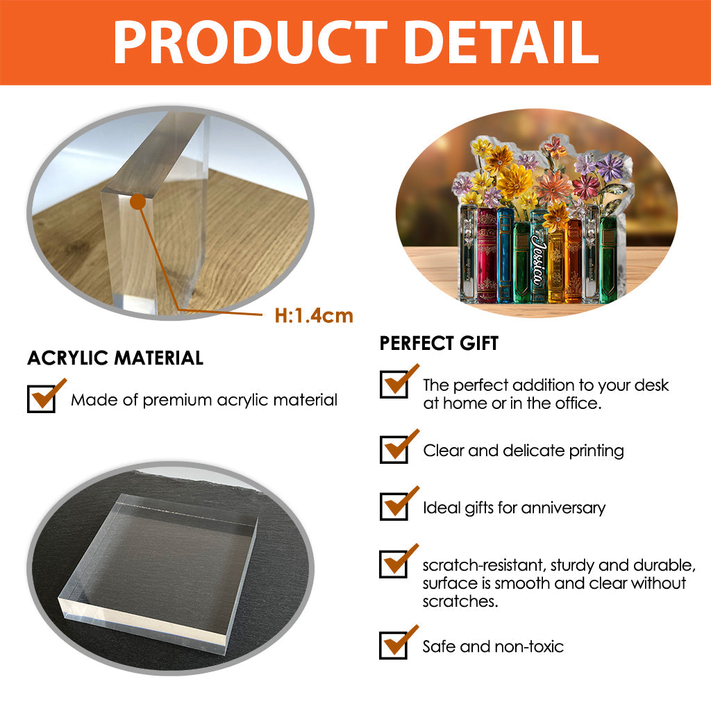 Livres et fleurs - Plaque acrylique personnalisée en forme de livre