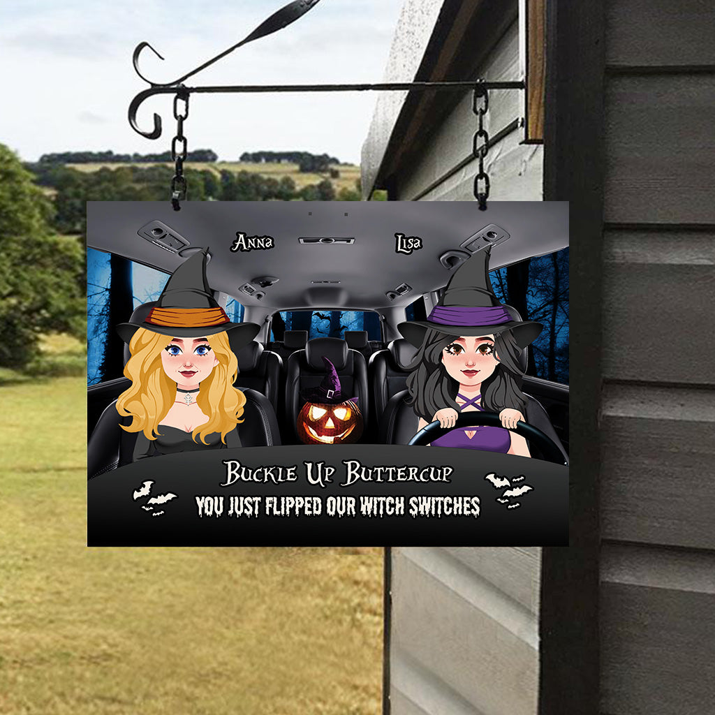 Attachez vos ceintures, ma belle ! – Panneau métallique rectangulaire personnalisé « Sorcière »