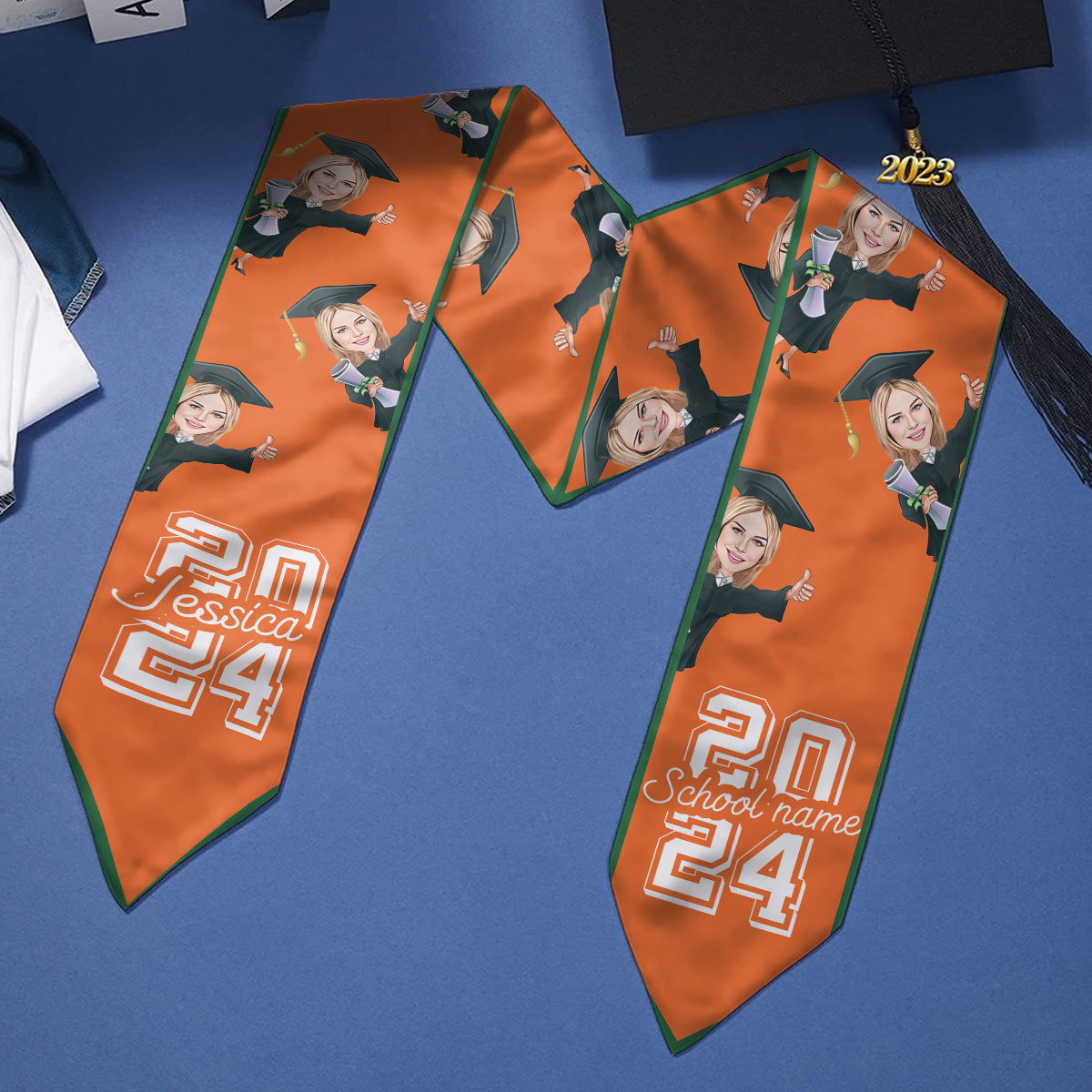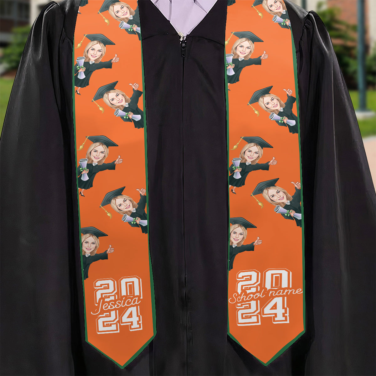 Écharpe de remise de diplôme personnalisée avec un personnage caricatural et amusant
