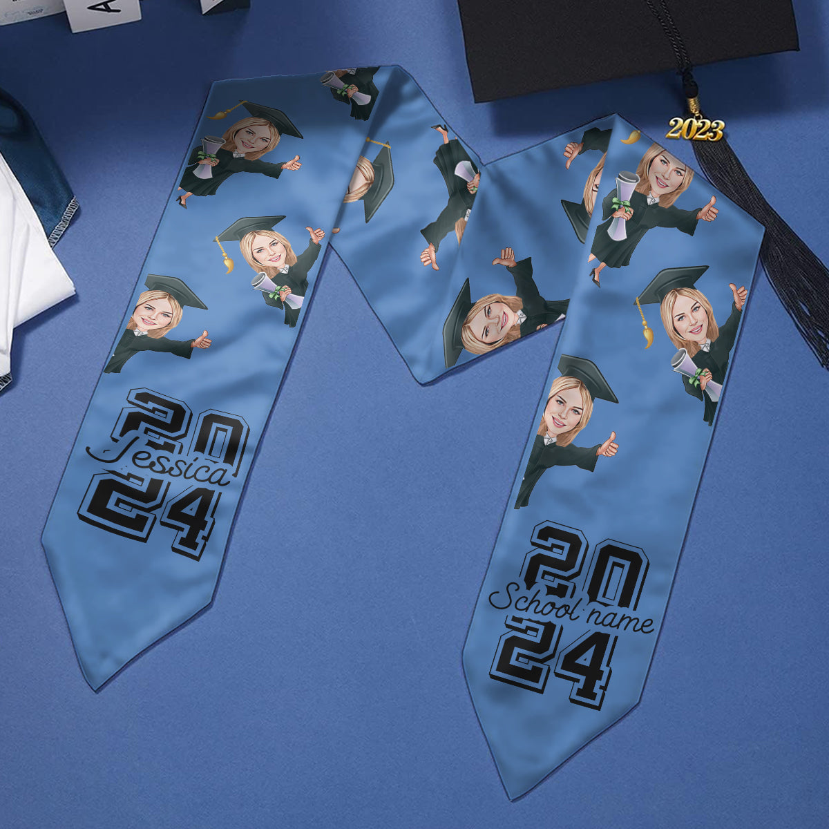 Écharpe de remise de diplôme personnalisée avec un personnage caricatural et amusant