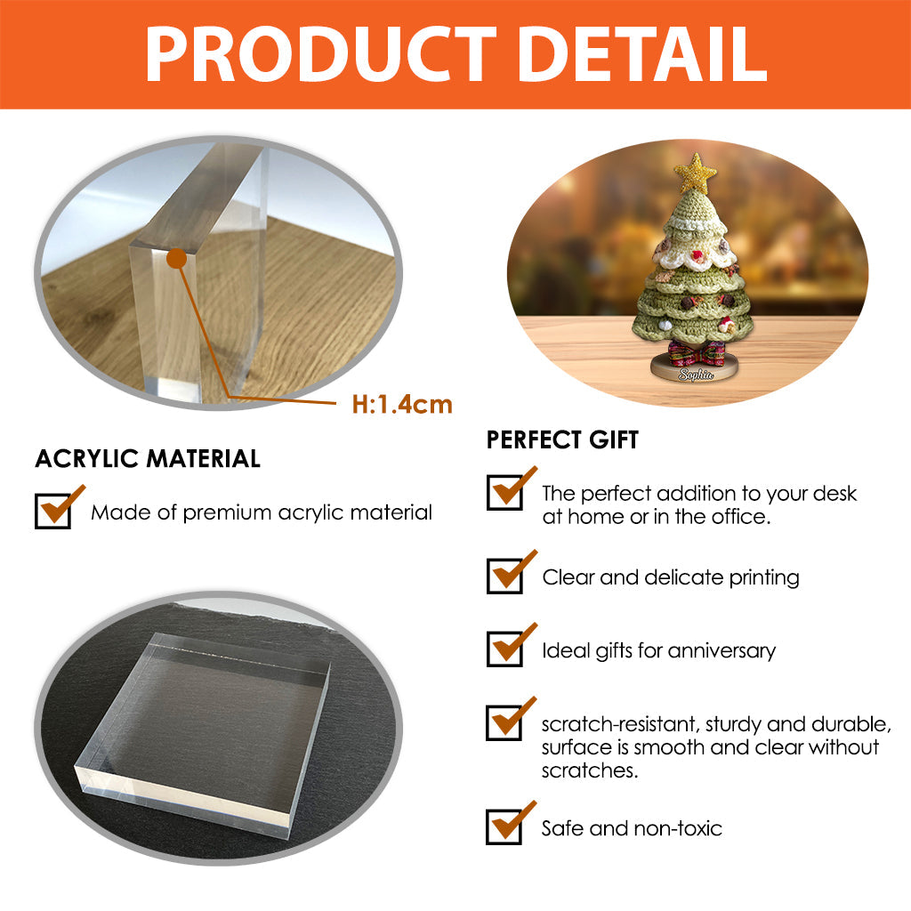 Modèle de sapin de Noël au crochet - Plaque acrylique personnalisée pour la famille