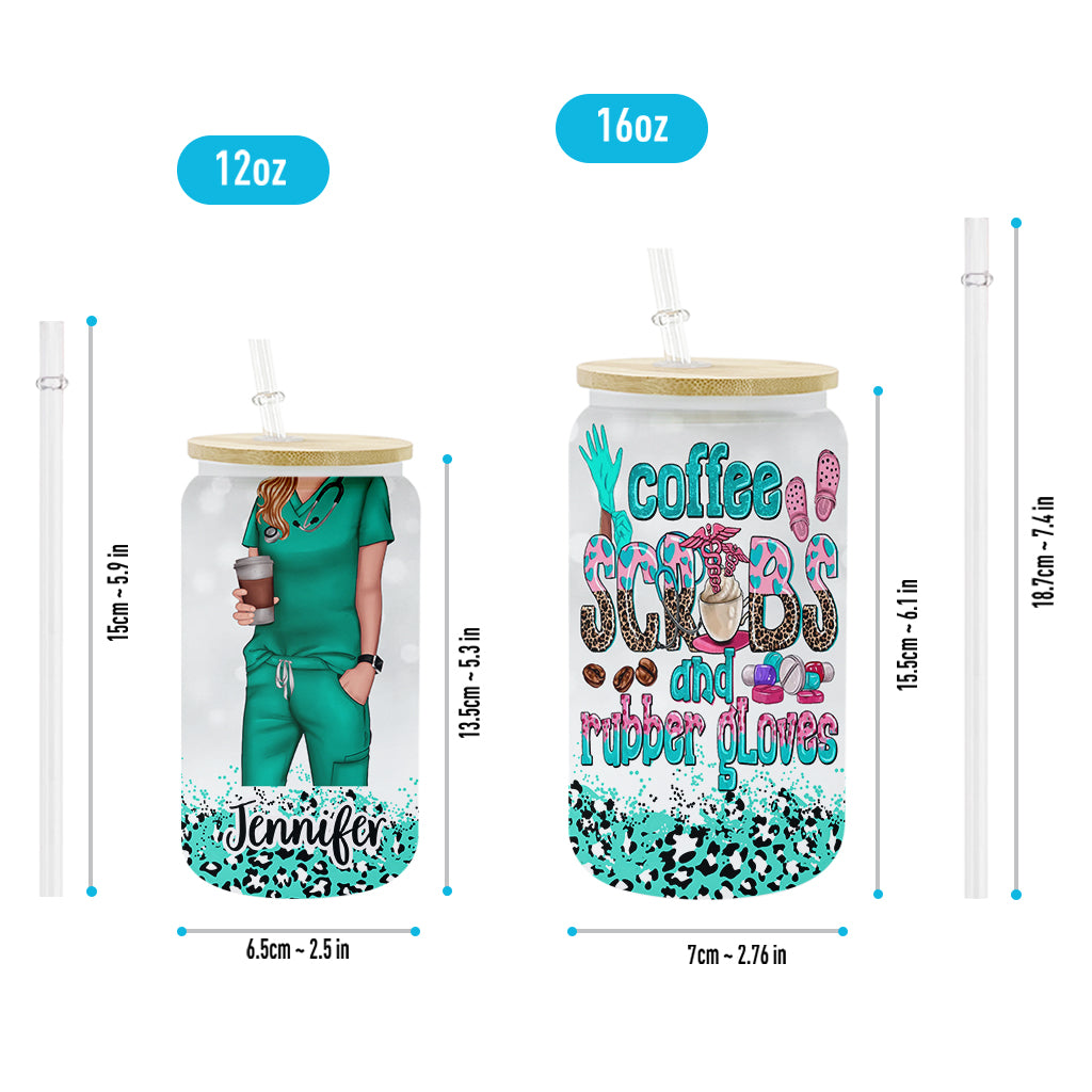 Gommages au café et gants en caoutchouc - Infirmière personnalisée en verre