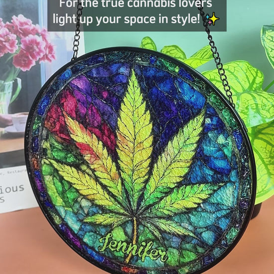 Attrape-soleil en vitrail coloré sur le thème du cannabis - Personnalisé