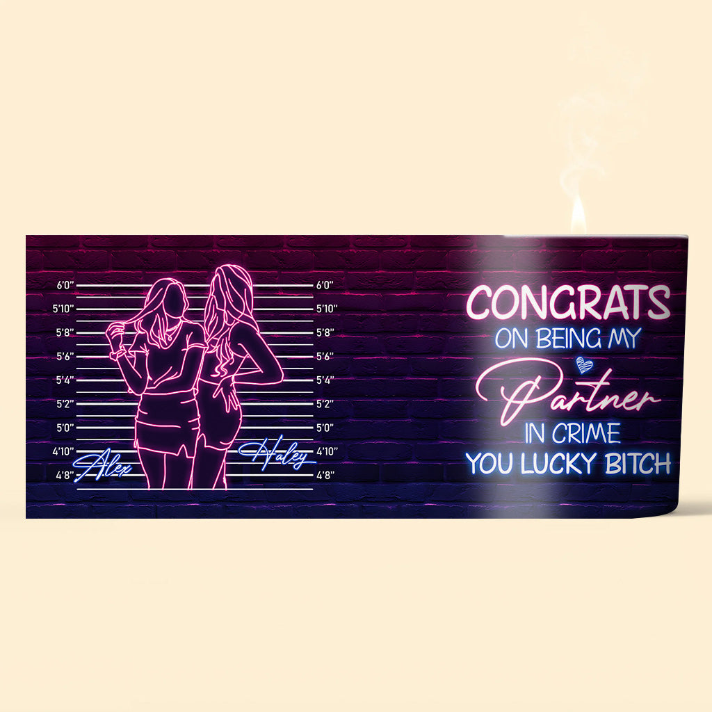 Félicitations pour être ma complice ! - Cadeau pour une amie - Bougie personnalisée avec couvercle en bois