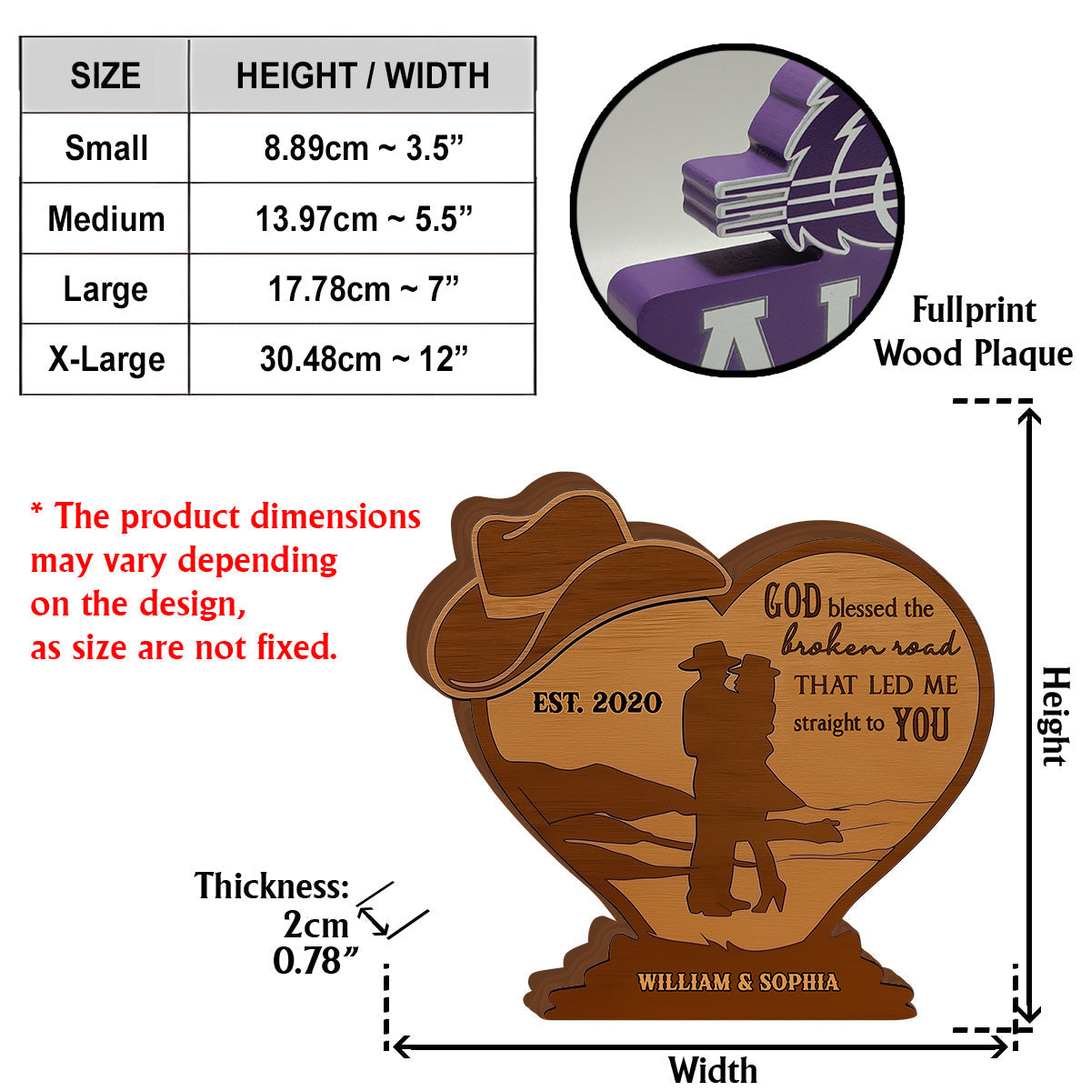 Couple de cowboys, Dieu a béni la route brisée - Plaque en bois personnalisée pour couple