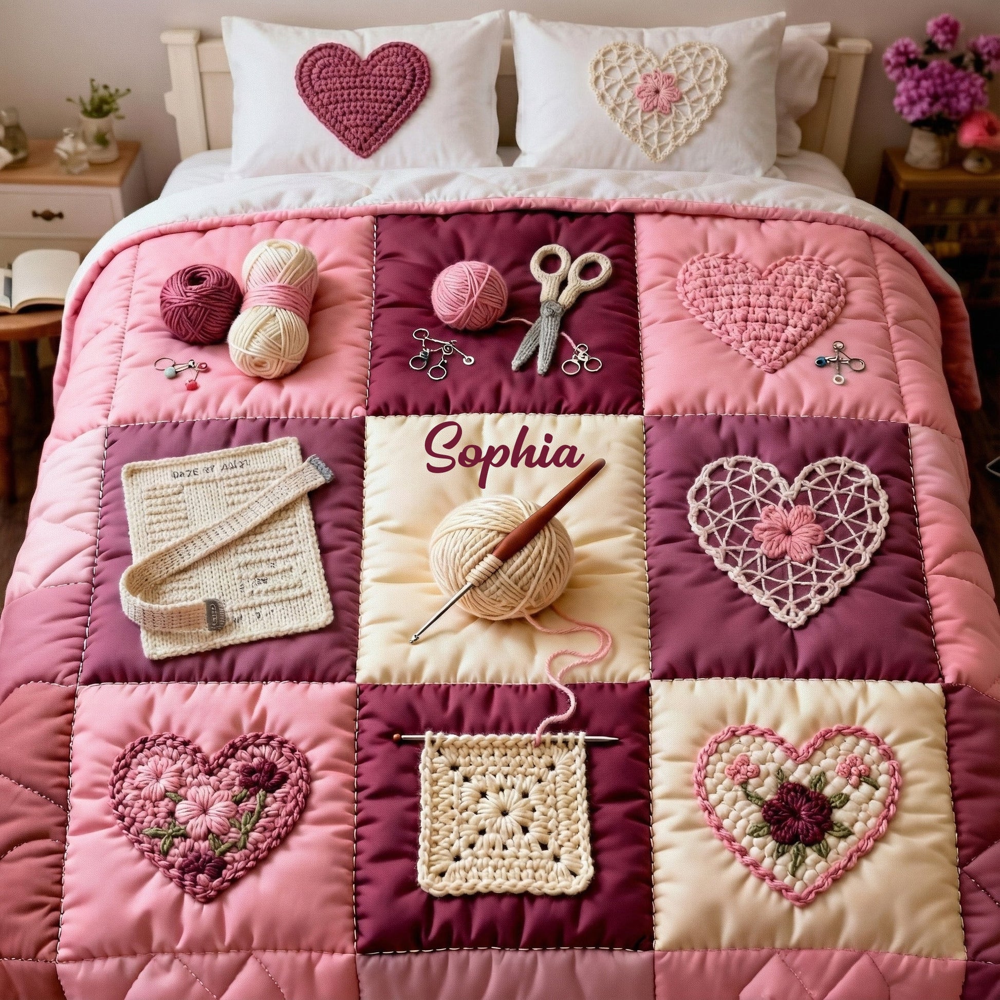 Cœur au crochet - Ensemble de literie personnalisé au crochet