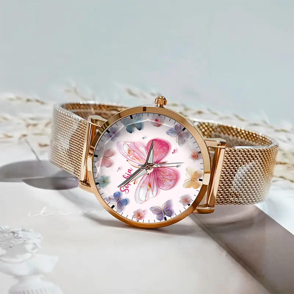 Montre-bracelet papillon personnalisée pour femme Crystal Butterflies - Papillons en cristal