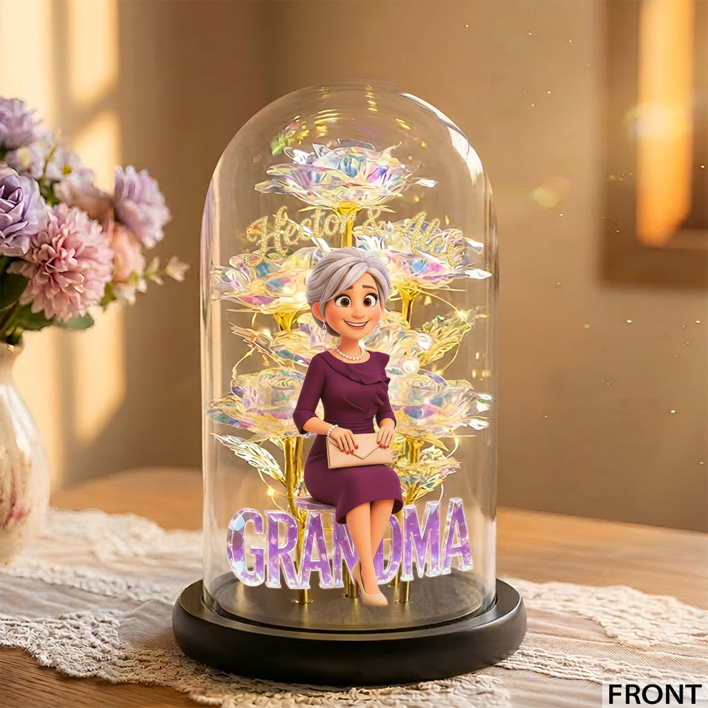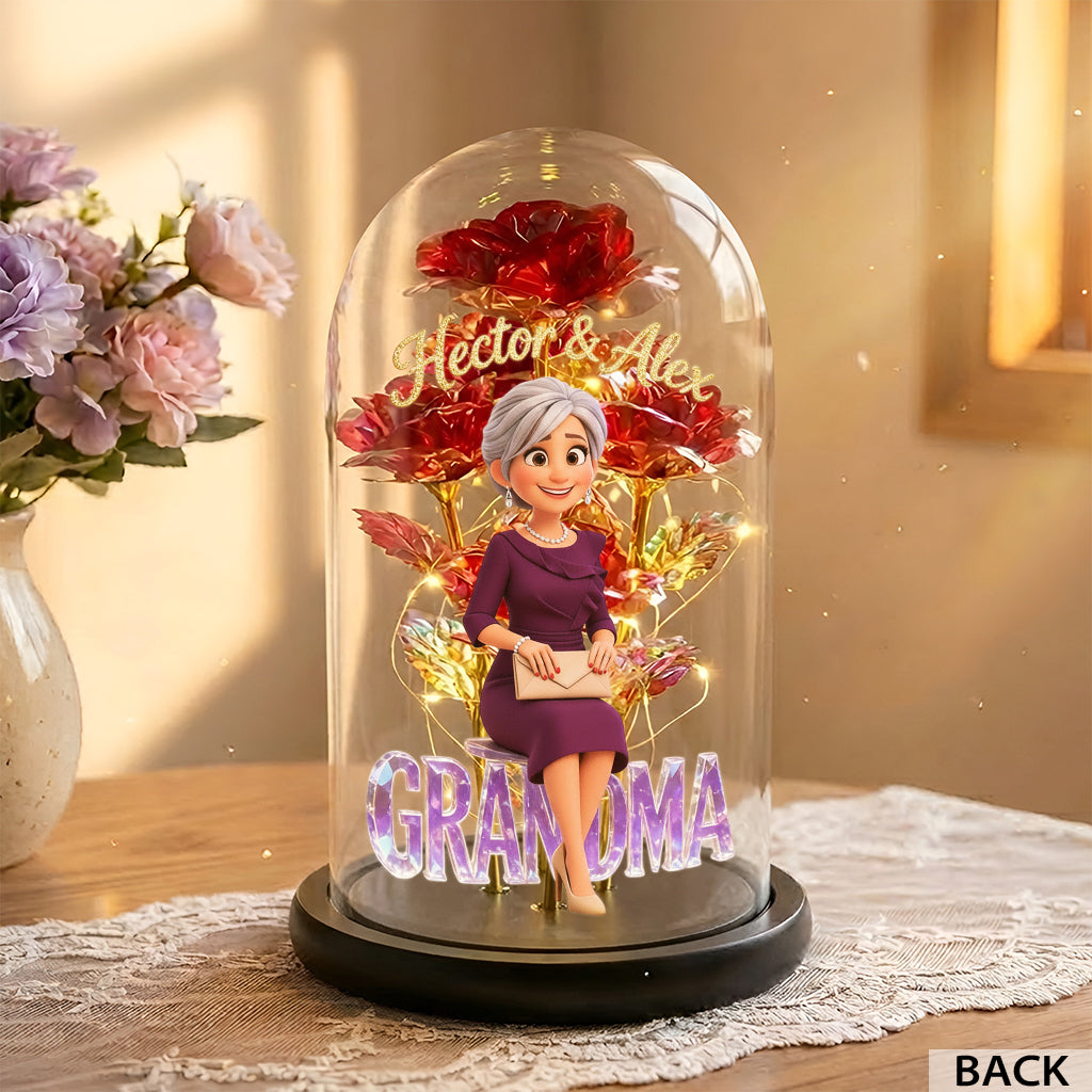 Custom Any Photo - Personalized Grandma Glowing Roses Glass Dome