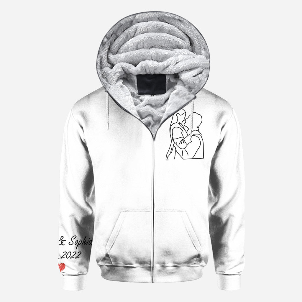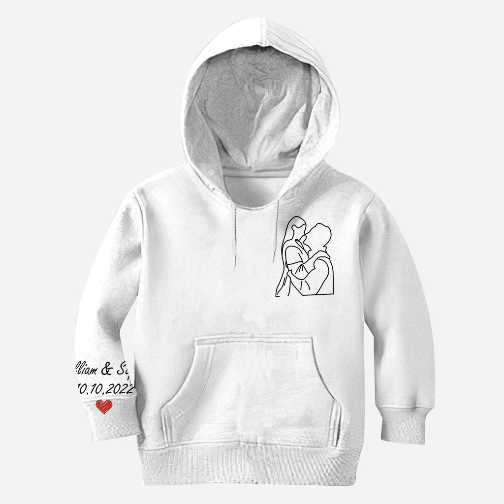 Portraits dessinés au trait personnalisés - T-shirt personnalisé mari et femme imprimé sur toute la surface