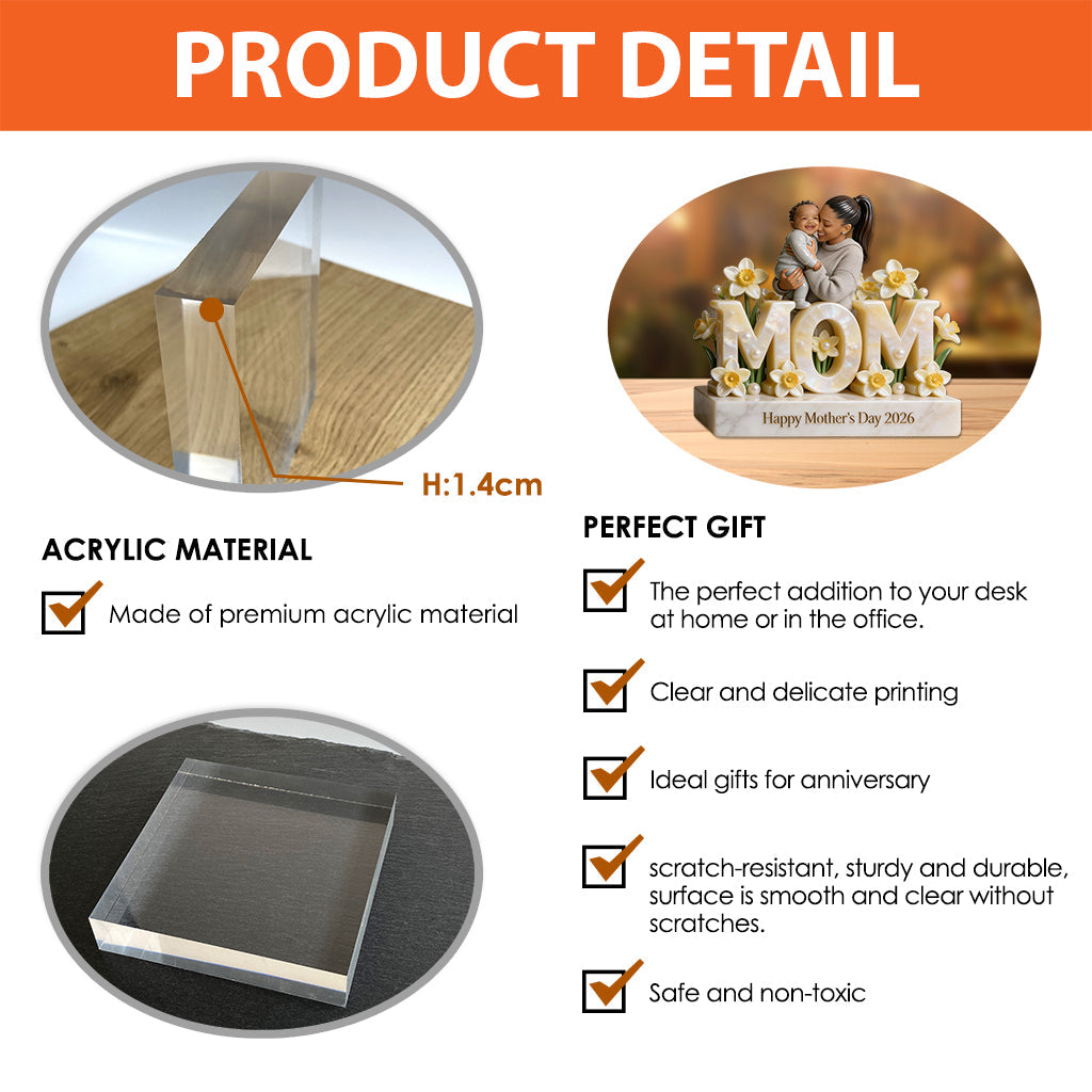 Cadeau personnalisé pour la fête des mères (maman/grand-mère), motif floral au choix - Plaque acrylique personnalisée en forme de mère