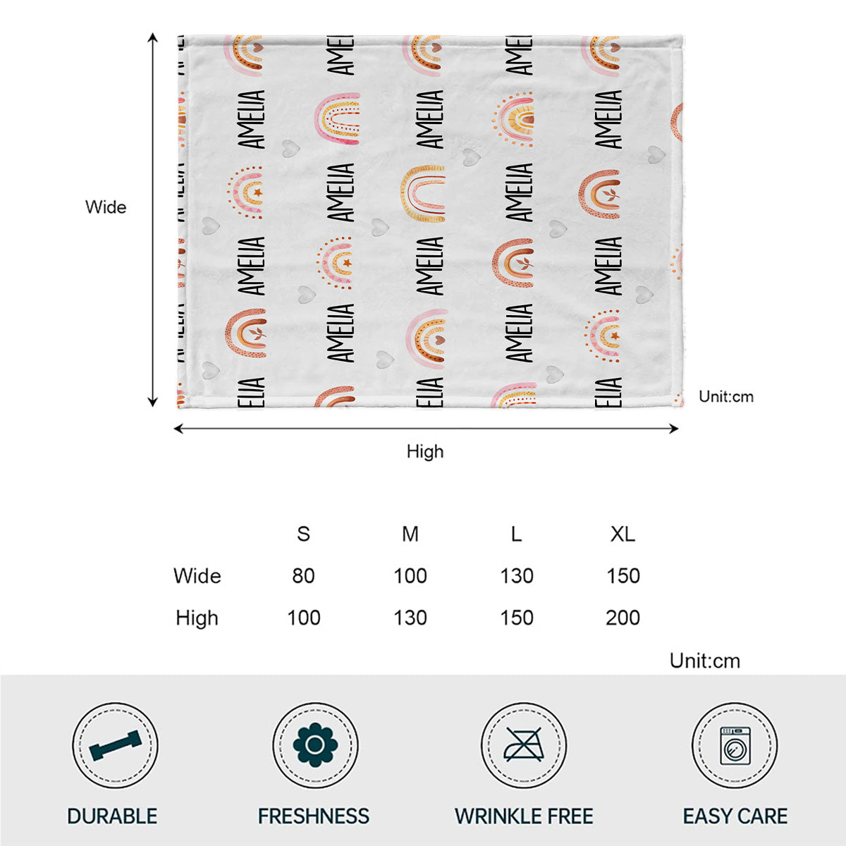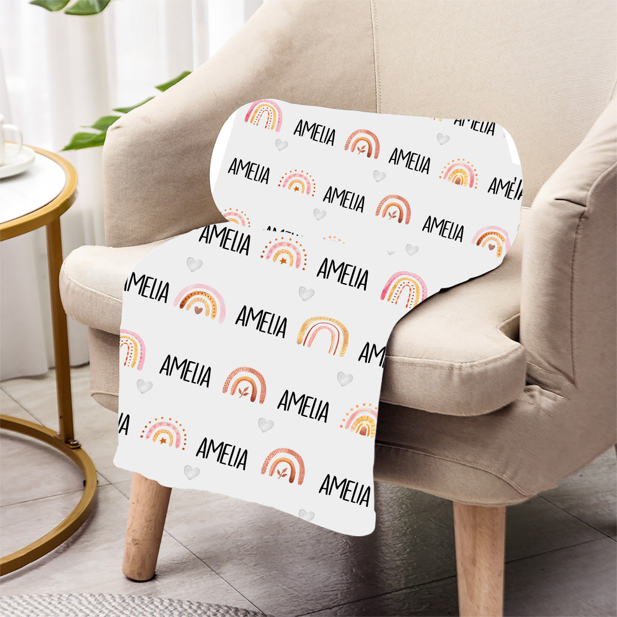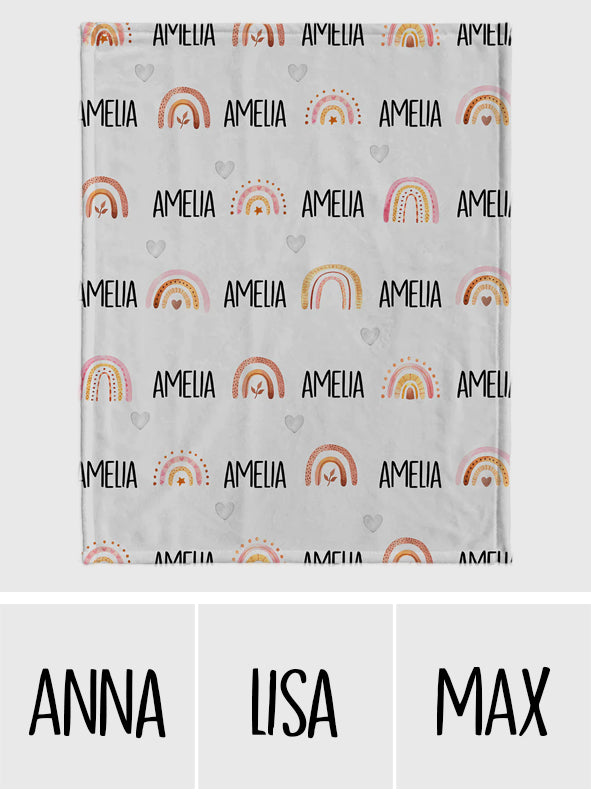 Couverture personnalisée arc-en-ciel rétro avec nom pour petite-fille