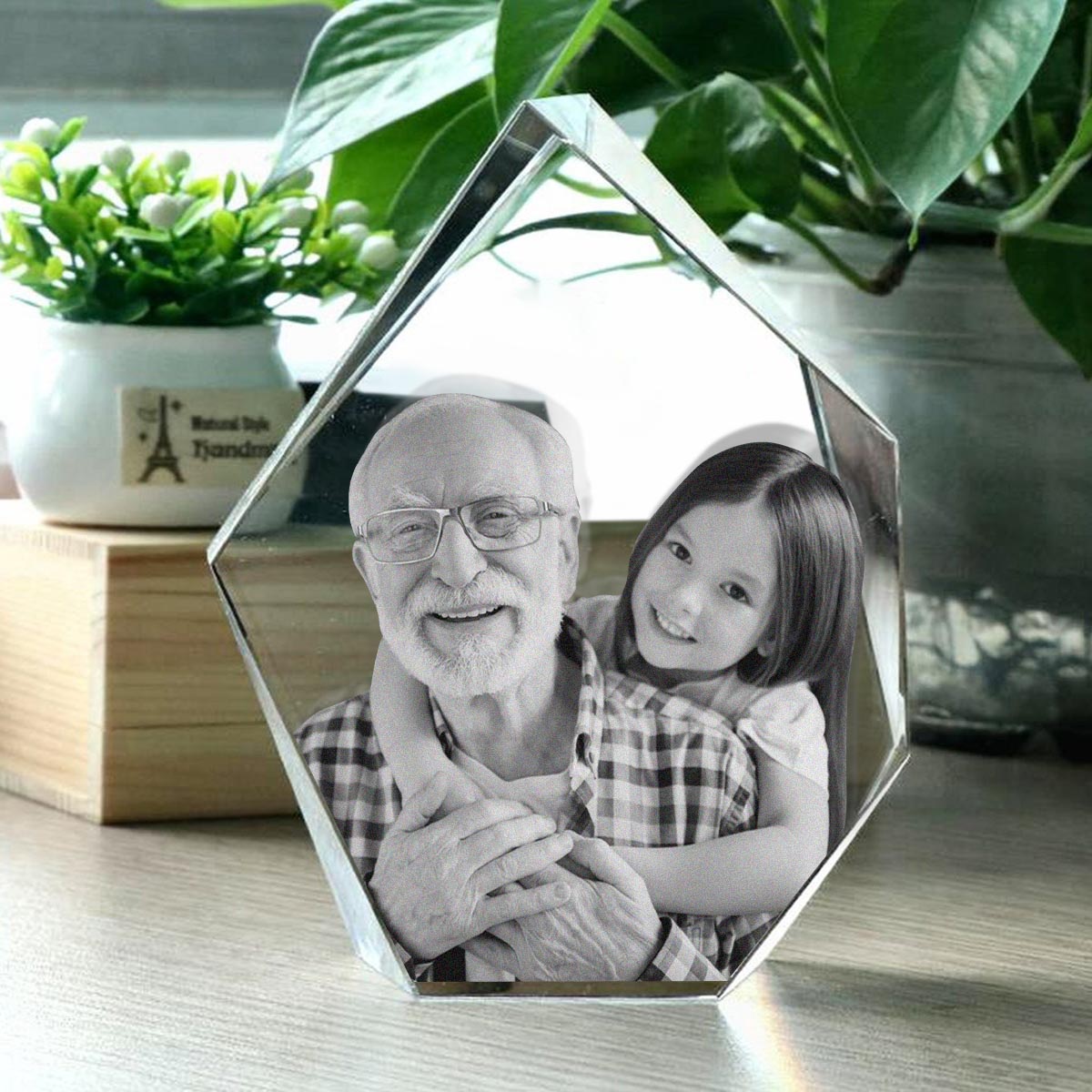 Lampe en cristal 3D en forme d'iceberg avec gravure laser personnalisée « Grand-père » et photo personnalisée