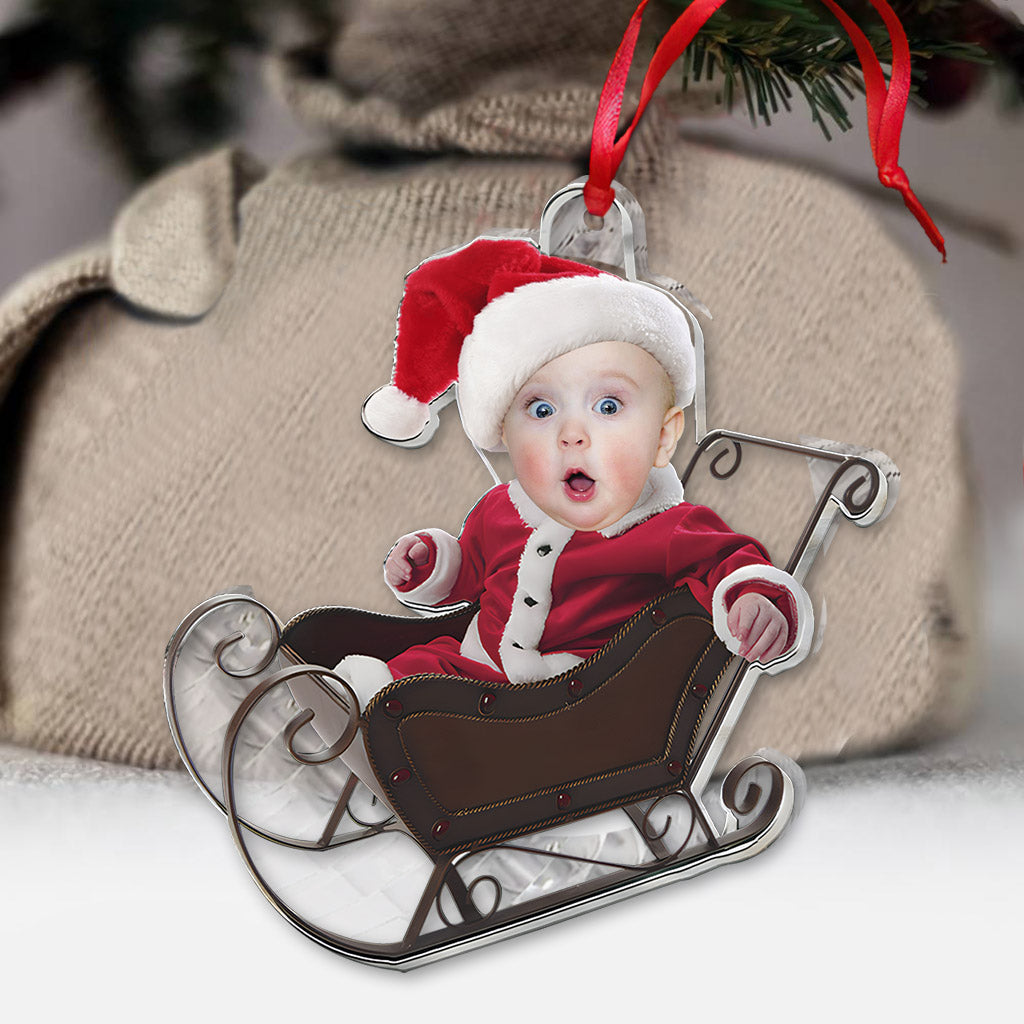 Traîneau mignon pour bébé - Ornement transparent personnalisé pour nouveau-né