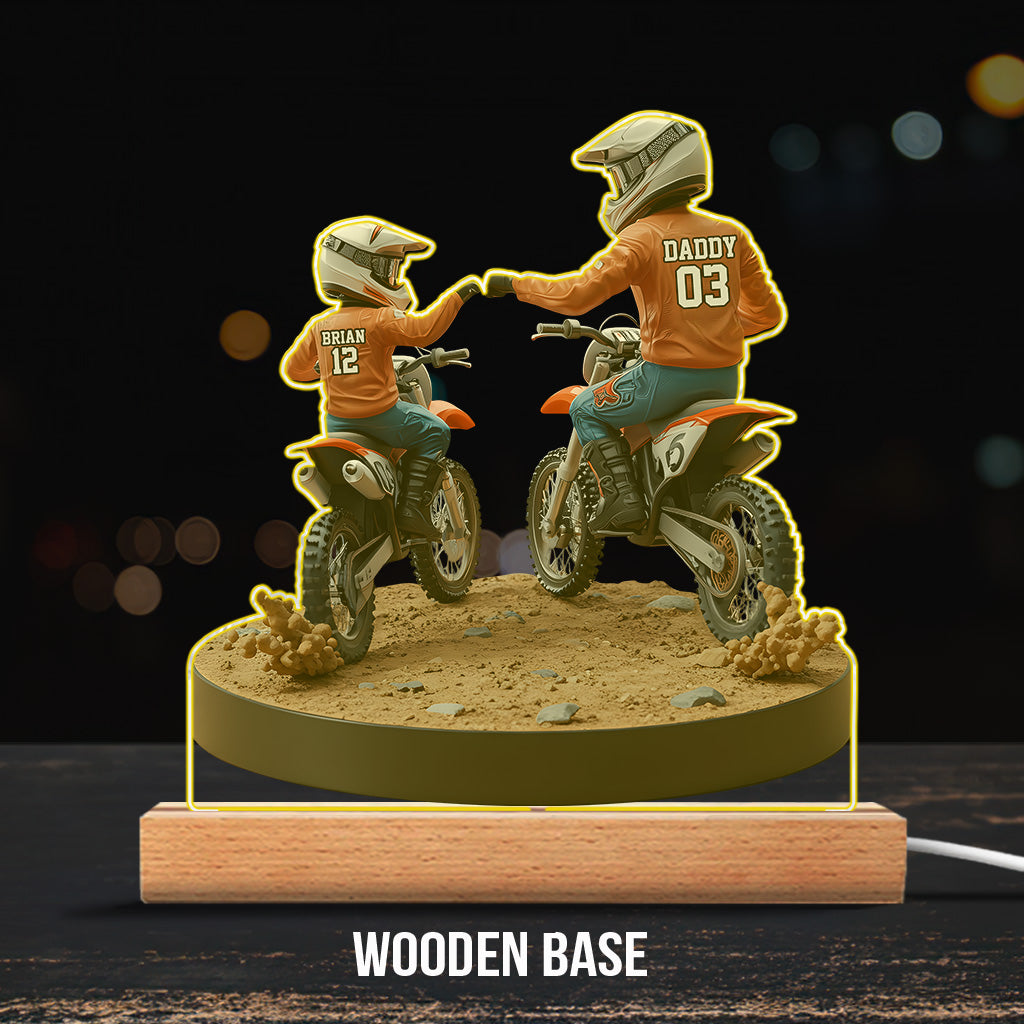 Papa et enfant motards - Plaque acrylique personnalisée en forme de moto tout-terrain