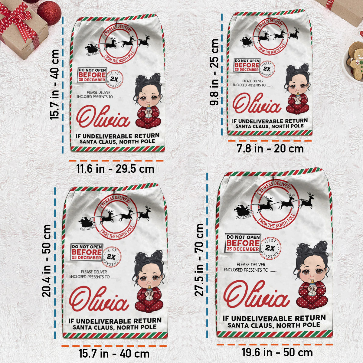 Ce magnifique sac cabas en daim à cordon de serrage est personnalisable avec le nom et le motif de votre choix. L'impression est réalisée directement dans le tissu, pour une finition impeccable et haut de gamme. Le sac se ferme par deux cordons de serrage sur le dessus, assurant ainsi la sécurité de vos affaires. Idéal comme cadeau pour la famille, les amis, les enfants et les êtres chers, ce sac cabas apportera une touche d'originalité à votre décoration de Noël et vous accompagnera au quotidien. Remplissez-le de cadeaux et déposez-le sous le sapin pour que chacun puisse les découvrir le jour de Noël, ou personnalisez-le pour en faire un sac à surprises pour la veille de Noël.