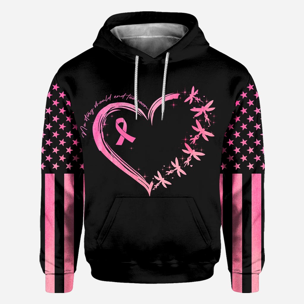 T-shirt et sweat à capuche « Libellules Cœur Aucune histoire ne devrait se terminer trop tôt » - Sensibilisation au cancer du sein - 0822