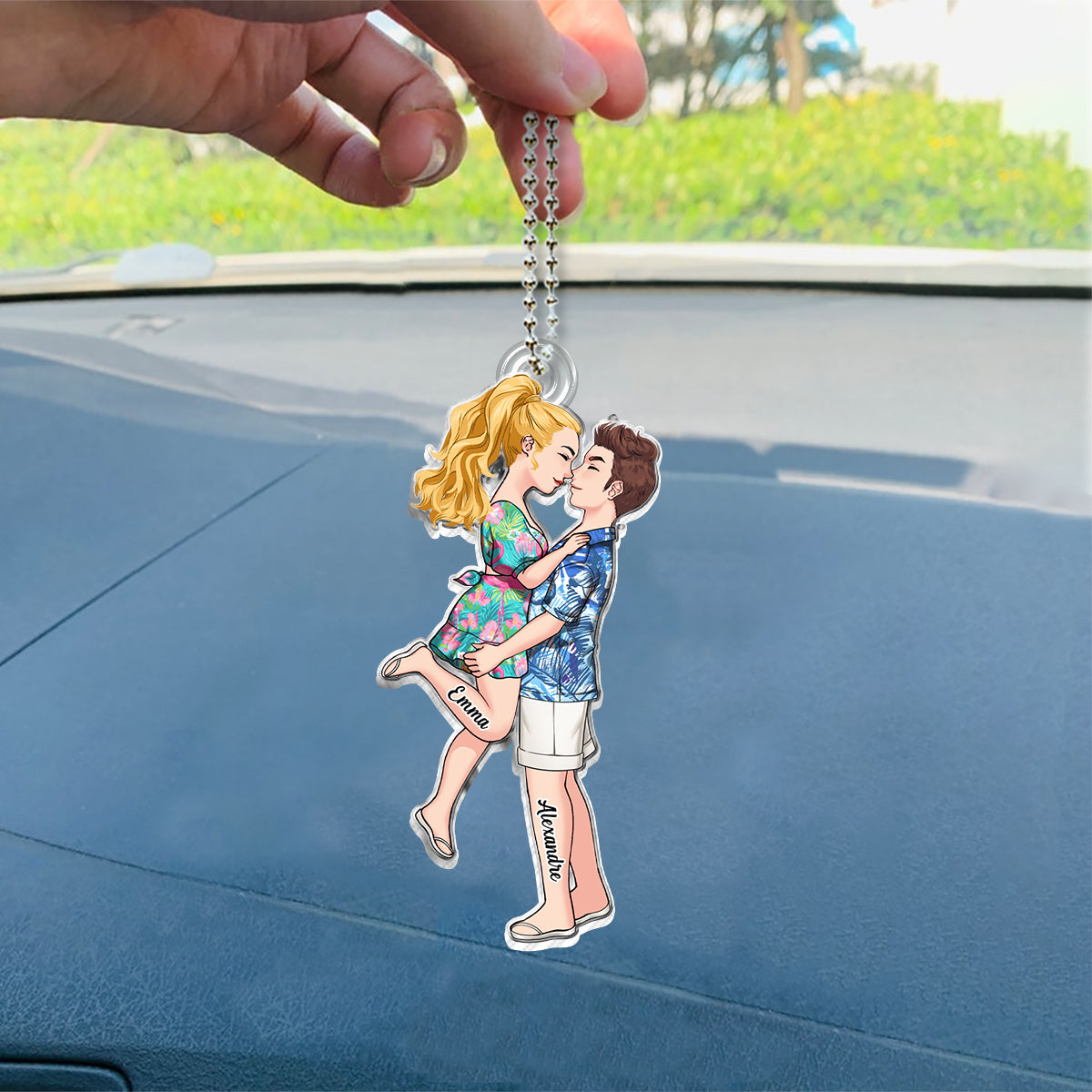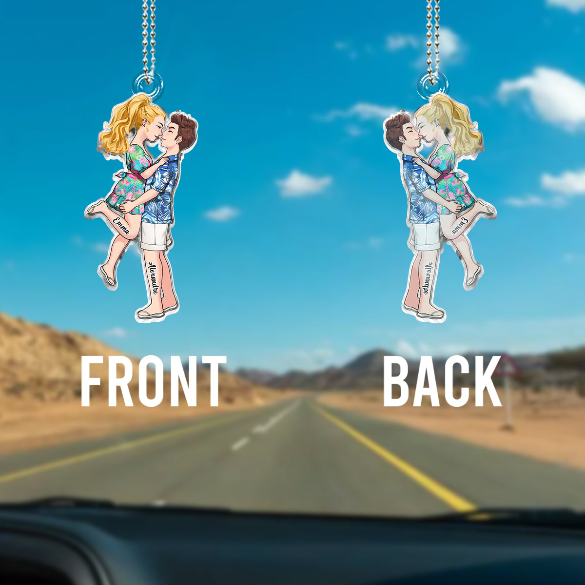 Conduis prudemment, je t'aime - Ornement de voiture personnalisé pour couple.